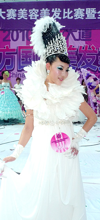 2010沈陽(yáng)青年職業(yè)技能大賽美容美發(fā)比賽暨全國(guó)青年美容美發(fā)邀請(qǐng)賽新娘化妝組冠軍、盤錦麗人藝術(shù)婚紗影樓參賽選手 張靜的獲獎(jiǎng)作品